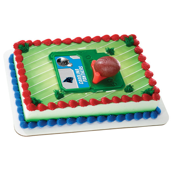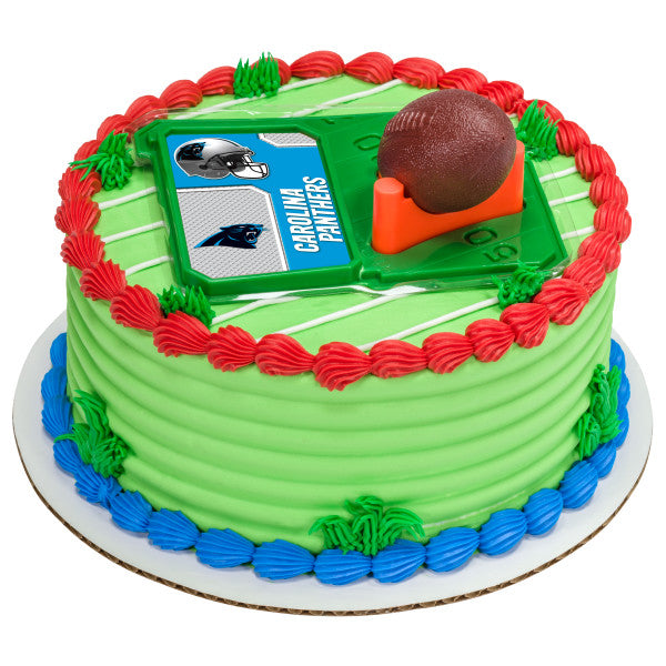 Score a touchdown with your favorite NFL football fan! This DecoSet celebrates the special occasion with The Carolina Panthers with a green field plaque with the teams logo, football and tee. Officially Licensed Product of the National Football League. 3-Piece set.
