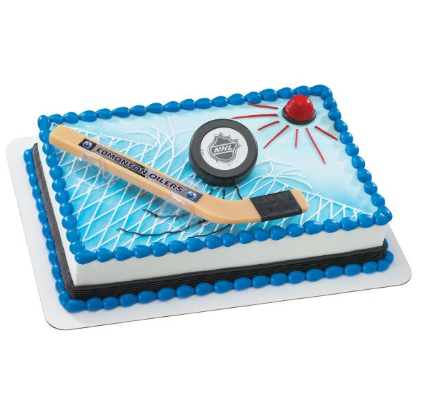 Celebrate with a hockey enthusiast with this NHL® Edmonton Oilers® action cake. The NHL Slap Shot DecoSet features a hockey stick and puck as great items for any fan to keep after their party. 2-Piece set.