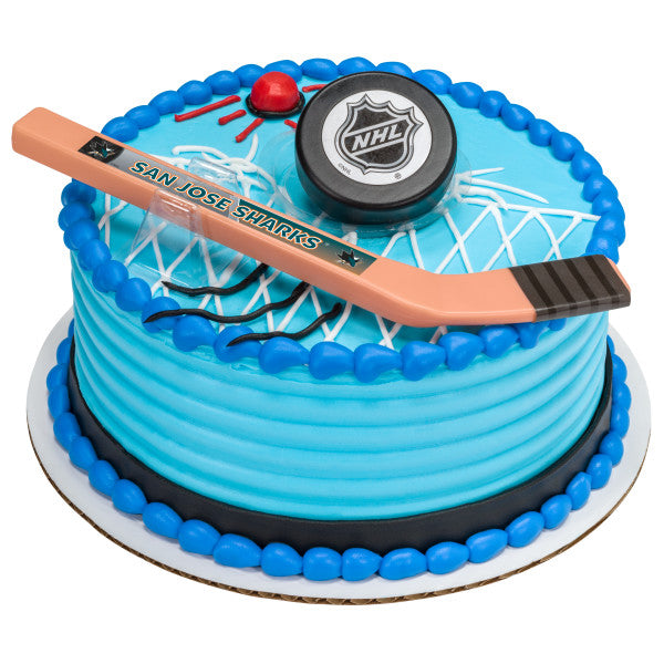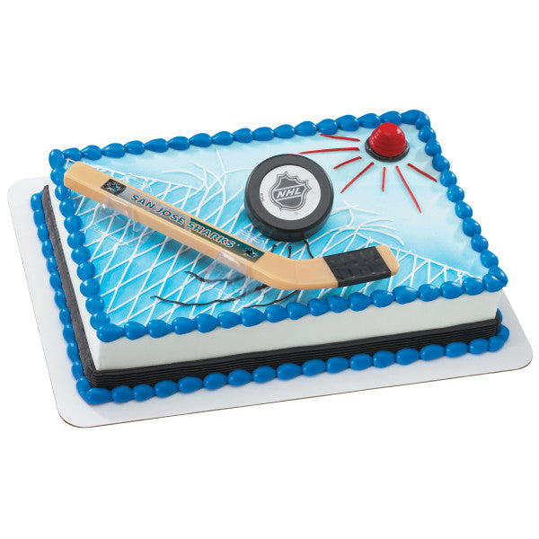 Celebrate with a hockey enthusiast with this NHL® San Jose Sharks® action cake. The NHL Slap Shot DecoSet® features a hockey stick and puck as great items for any fan to keep after their party. 2-Piece Set.