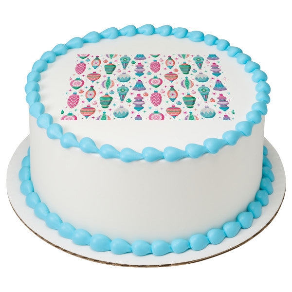 | Wrap your cakes in a joyful Christmas print! Perfect for a fault line trend cake, or paired with our coordinating products, these colorful ornaments will shimmer and shine on your dessert. |