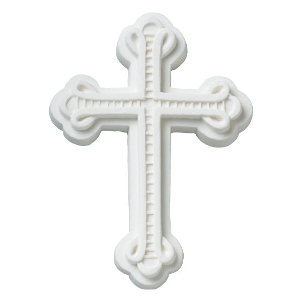 Celebrate Easter and communion with this ornate, elegant cross. Gum paste is safe for food and not intended to be eaten. Contains wires. Due to the nature of this product, some breakage may occur and the product has been priced accordingly.