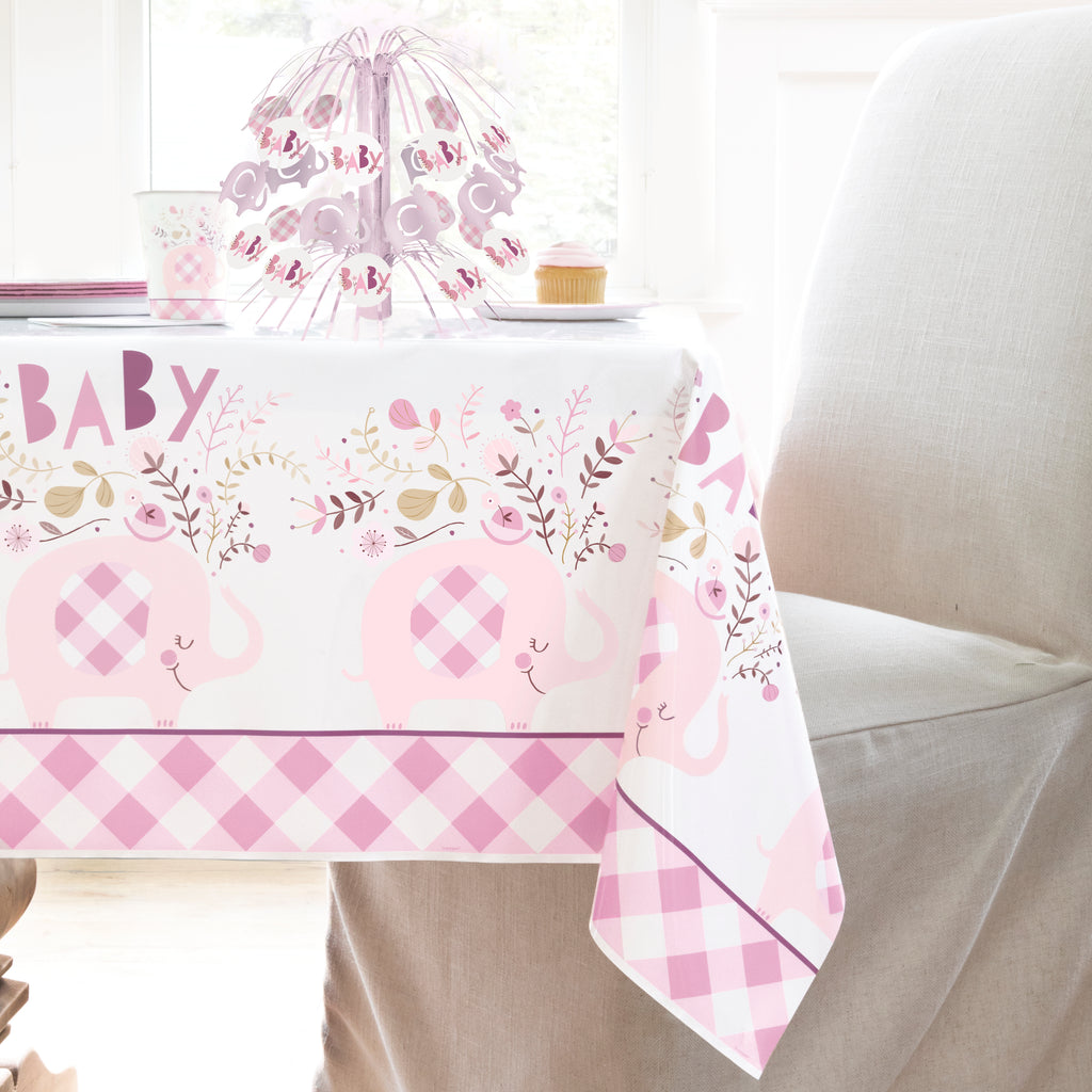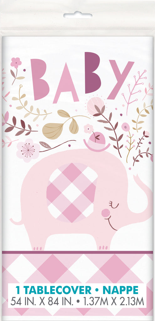 Pink Floral Elephant Plastic Table Cover, 54"x84", 1ct