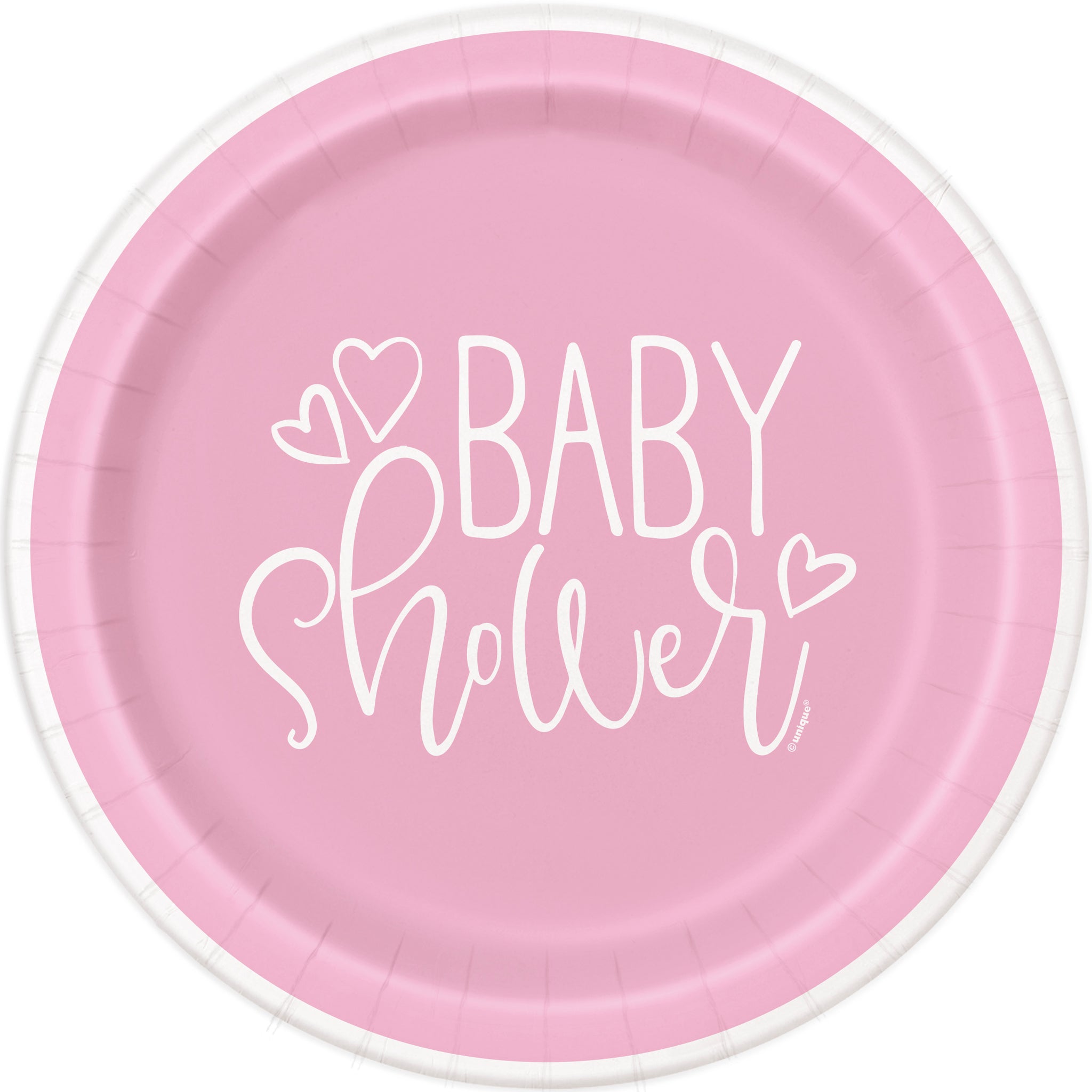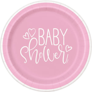 Pink Hearts Baby Shower Round 7" Dessert Plates, 8ct