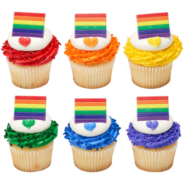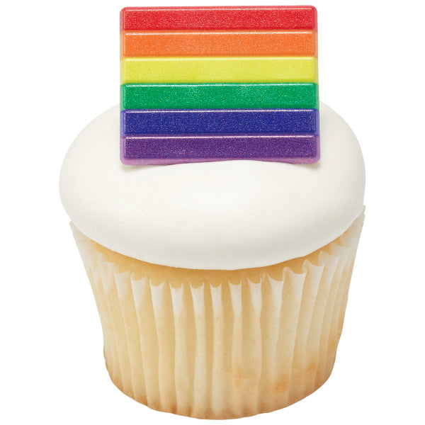 Celebrate inclusivity with these Pride Flag rings. This vibrant cupcake ring doubles as a unique keepsake. Great for cupcakes, donuts, or even finish off the look of a cake. Dimensions: