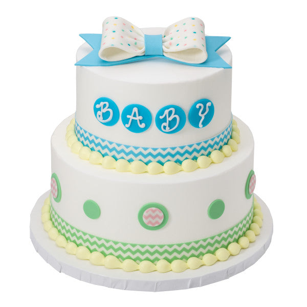 These pastel colored patterned dots are a perfect addition to adding to your overall design. Pre-rolled and cut fondant shapes speeds up production and adds a beautifully detailed touch to your cake creations. Use in combination with other fondant pieces or gum paste bows to create a beautiful cake.