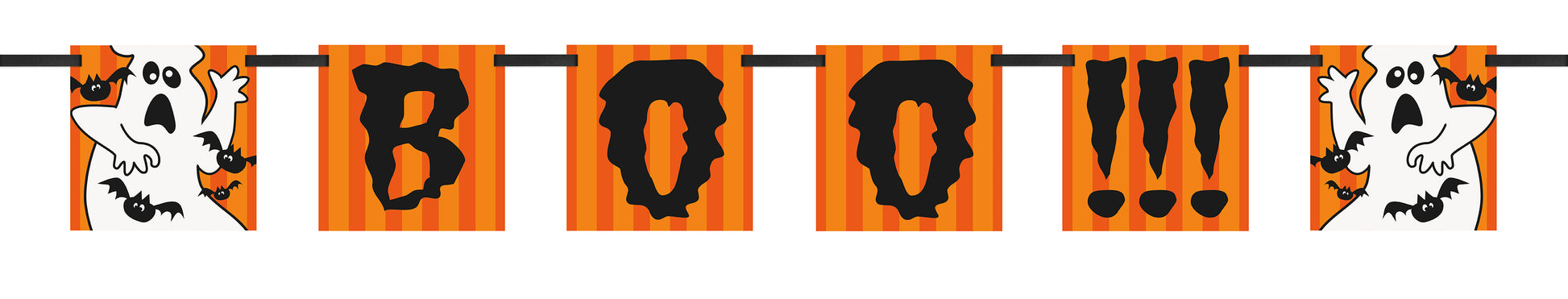 Be the ghost host with the most by decorating your home with this Paper Ghost Boo Halloween Banner. Featuring terrifying text spelling out "BOO..." and spooky designs of ghastly ghosts on either side, this cardstock banner will make a frightfully fun addition to any kids Halloween party or Halloween costume party. Hang it up near the front door to give ghouls and gals a real fright as soon as they walk inside. Or, drape it across the front of a scary snack table to make the spread of tricks and treats come to life. No matter where it's displayed, this party banner is sure to make your frightening festivity a real scream.