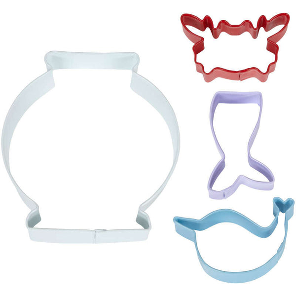 - Includes four metal cutters: 1 standard cutter (fishbowl) and 3 mini cutters (narwhal, mermaid tail, crab)