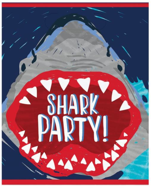 Guests won't be afraid to dive into our Plastic Shark Party Favor Bags! Lookin' sharp, these 9 by 7-inch favor bags feature an open-mouthed shark with "Shark Party!" written between its teeth. Fill all 8 plastic candy bags with party favors, treats, and other surprises for guests to take home after your shark birthday party. Make your party totally FIN-tastic birthday party by shopping more of our shark party supplies.