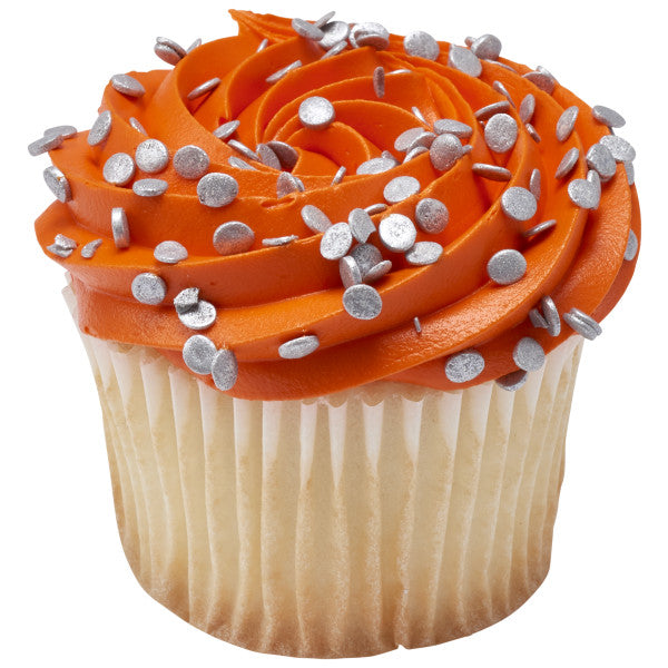 Metallic silver quins are a great way to glam up your desserts! Great for birthdays of all ages, New Year's, special occasions and more! 19.5 oz. handheld container. Due to the nature of the product, slight color variations may occur.