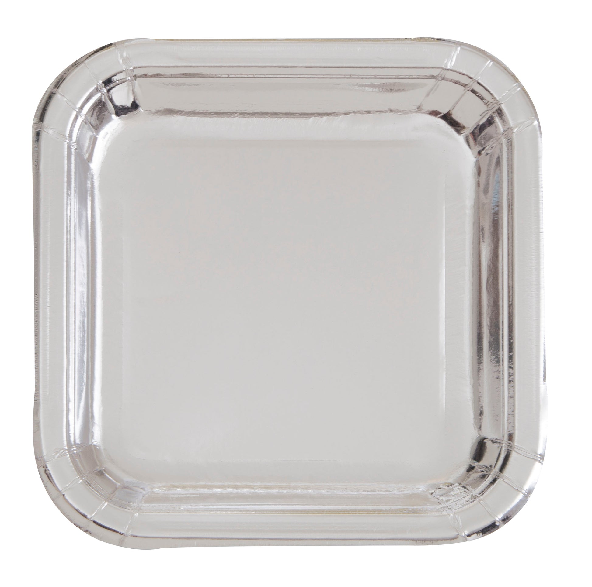 Serve your guests in style with Silver Dessert Plates! These paper plates feature a raised rim. Their solid silver color is perfect to coordinate with your event theme.
