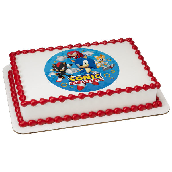 Join the Sonic and the gang as they come to the party on this edible cake topper image.