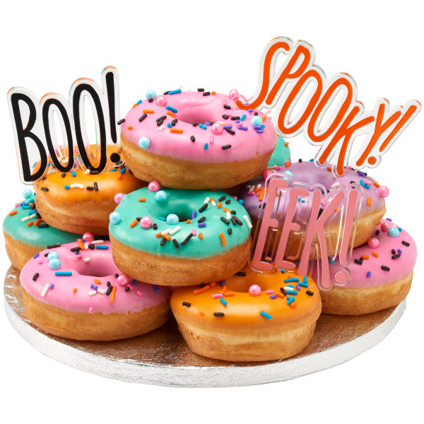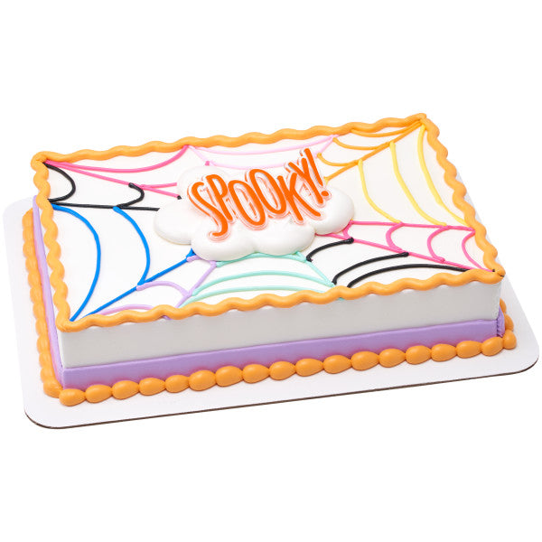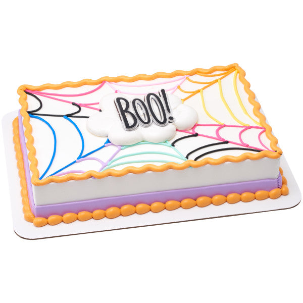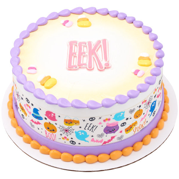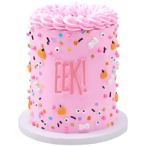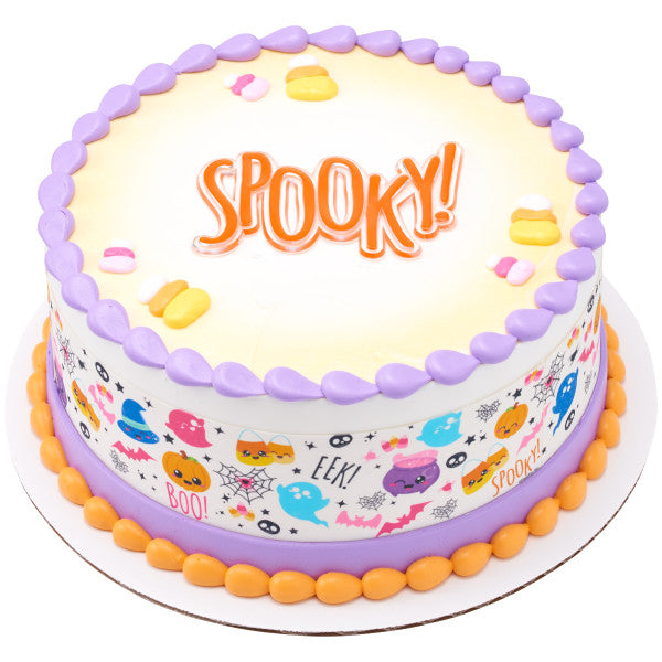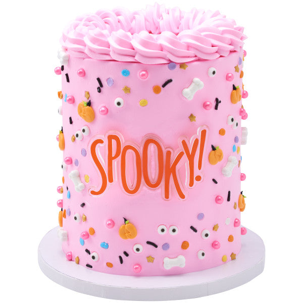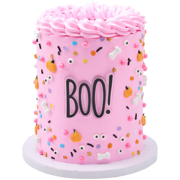 | Halloween's 3 favorite words are coming to a cake near you: Spooky! Eek! And Boo!! This versatile layon assortment in an eclectic Halloween color scheme makes for the perfect array of options to finish off your cake. Spooky sweet! Dimensions: