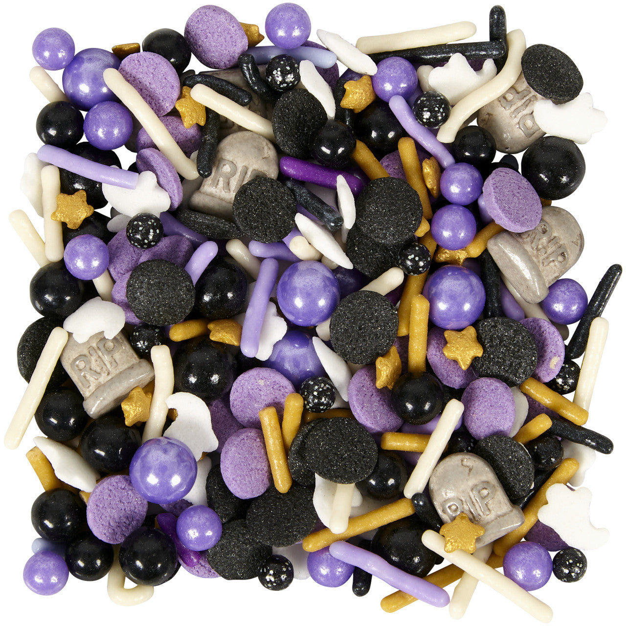 - Mix includes ghost-shaped sprinkles, tombstone sprinkles, stars, sugar pearls, jimmies and confetti.
