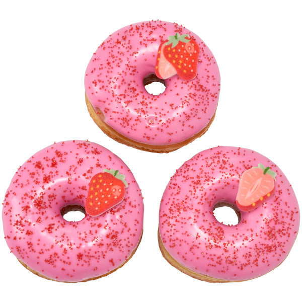 Adorable and delicious, these strawberry decorations are a great addition to your summer treats. Made of finely granulated sugar and painted with edible food color.