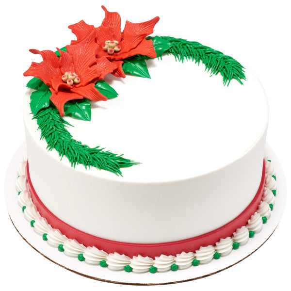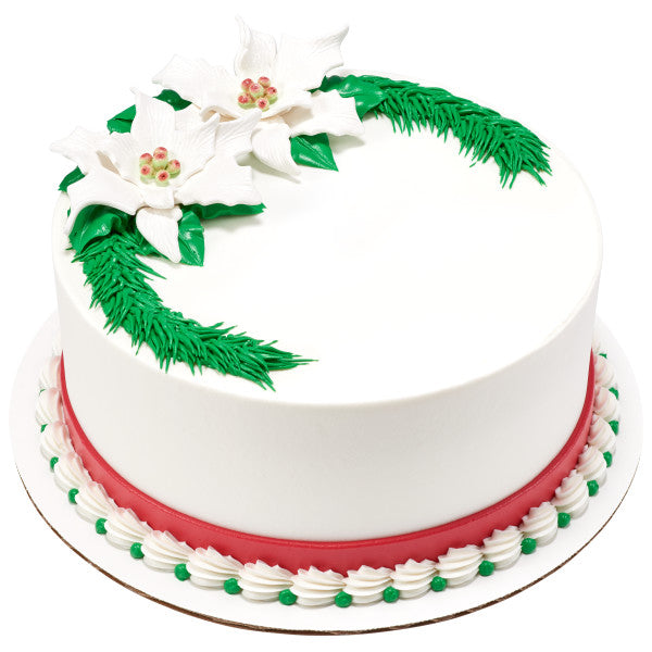 | A winter favorite, these glittered gum paste poinsettias add beauty and dimension to your cake display. Gum paste is safe for food contact and not intended to be eaten. Due to the nature of this product, some breakage may occur and the product has been priced accordingly. Dimensions: