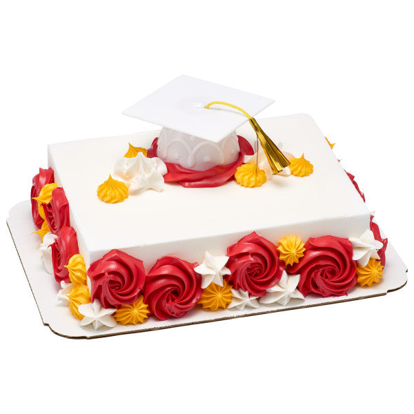 Celebrate a graduates many accomplishment by adding this white cap to your cake. Perfect for small or large cakes. Made with food safe plastic.