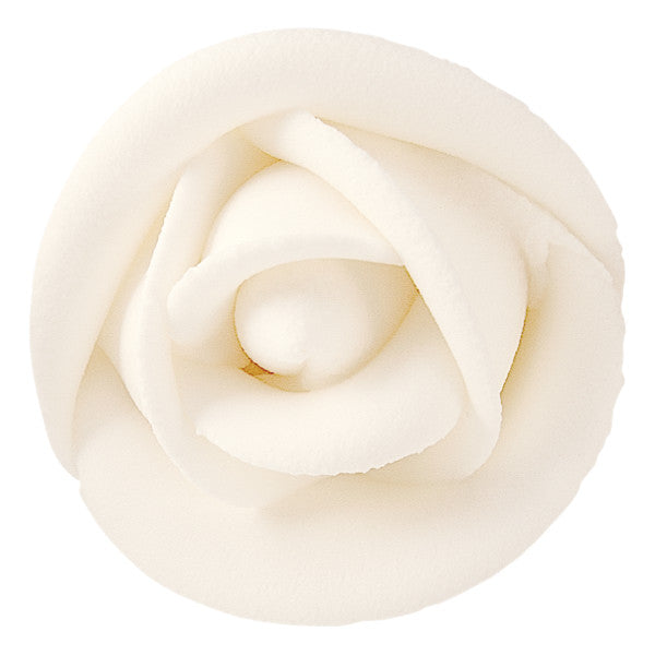 - White Icing Rose: 1.35 x 1.35 x 1.05 inches