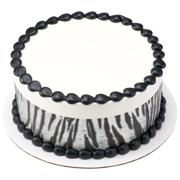 Create a cake with these Edible Cake Topper Image Strips from A Birthday Place. Strips are approximately 2.5" tall. One set of 3 strips will cover up to approximately 30 inches.