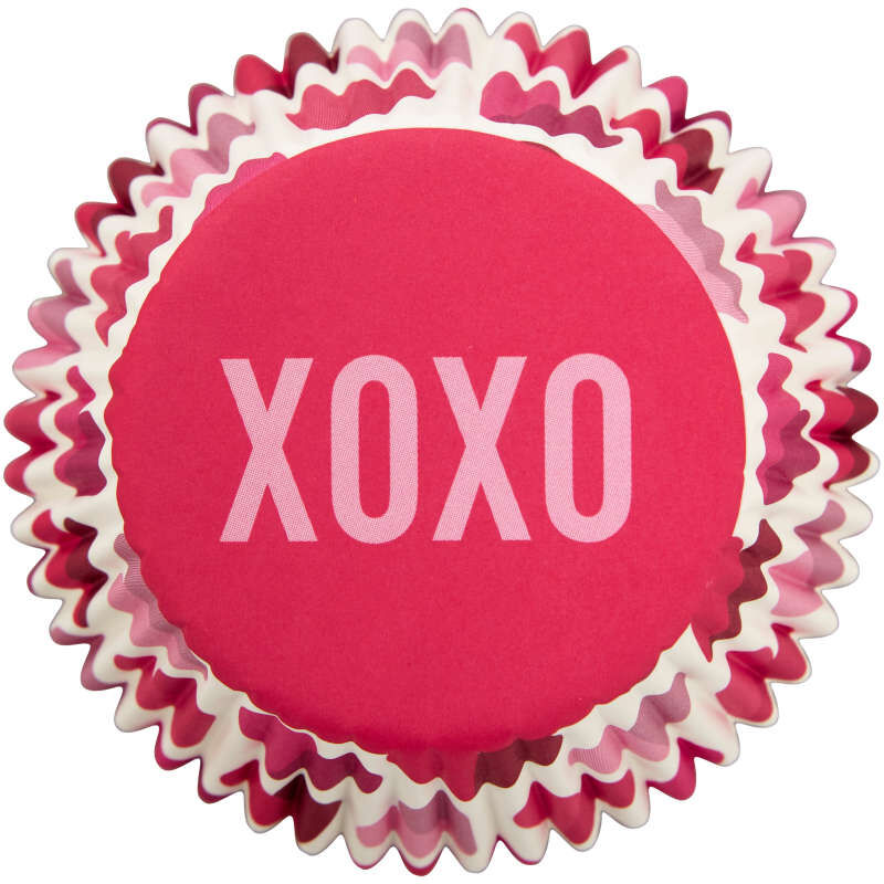 Say how you feel with baked goods! These standard baking cups feature assorted pink hearts with XOXO on the bottom. Perfect for cupcakes, muffins and more. 75-count.